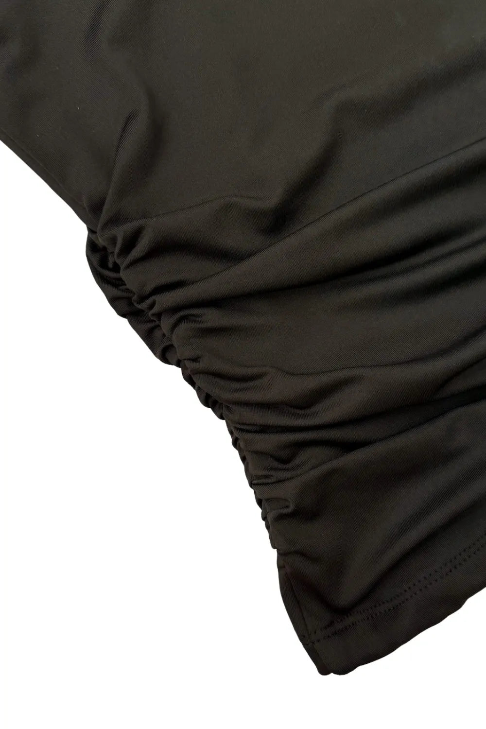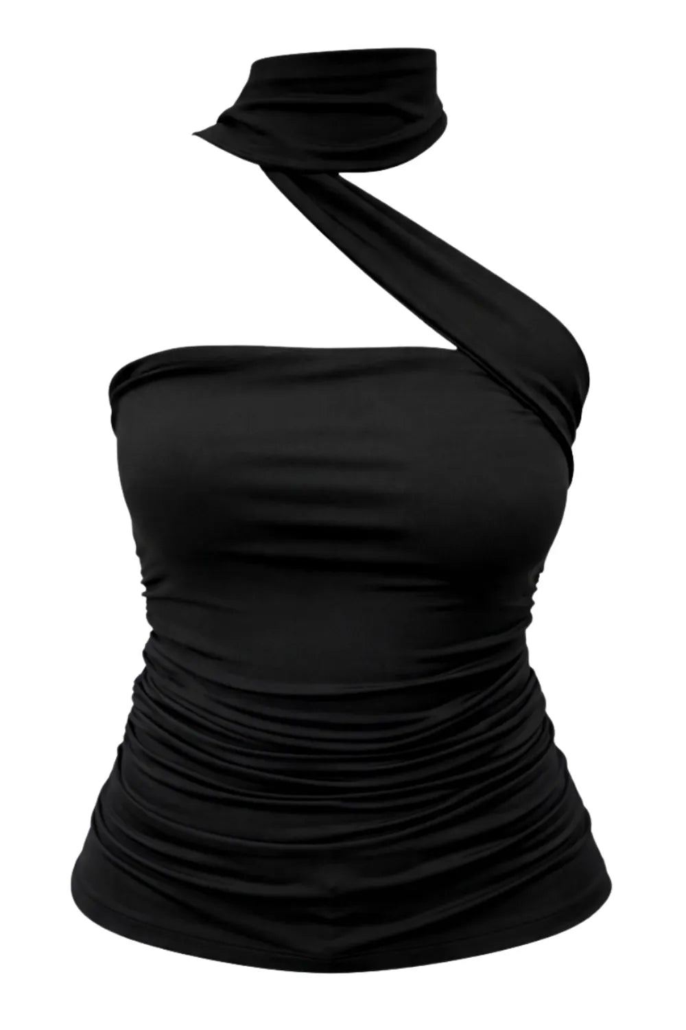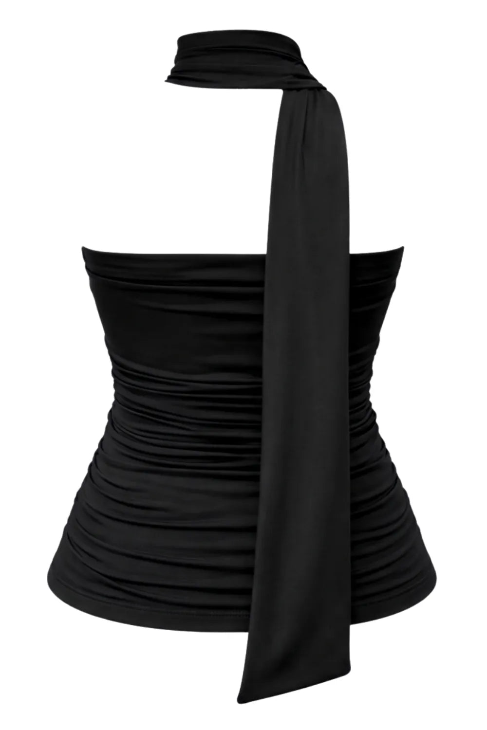 Top tubo de fit ajustado, escote recto, plisados en costados y detalle lateral de choker cruzado.