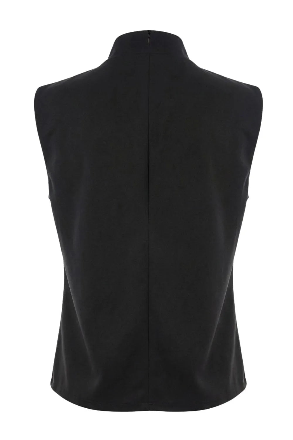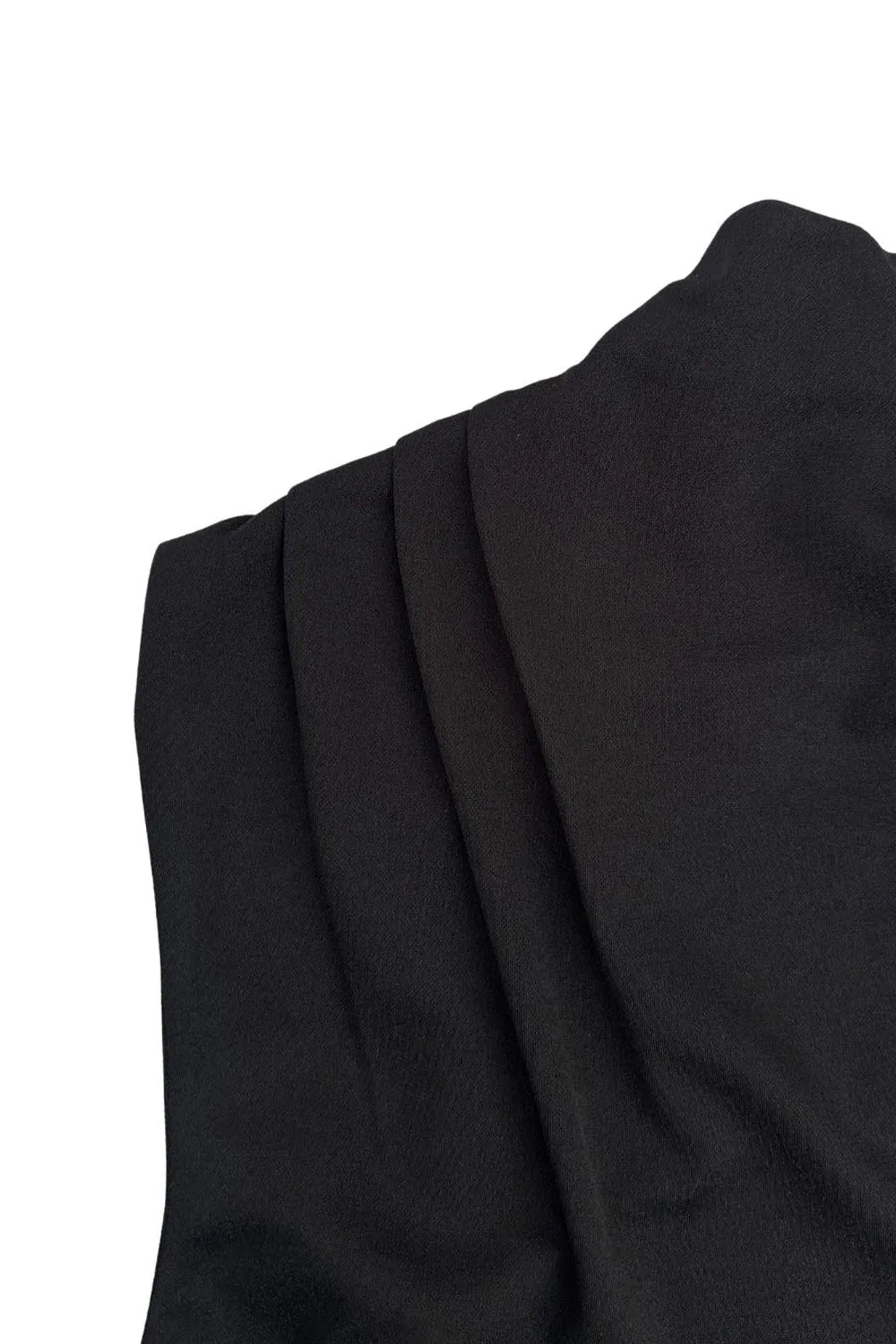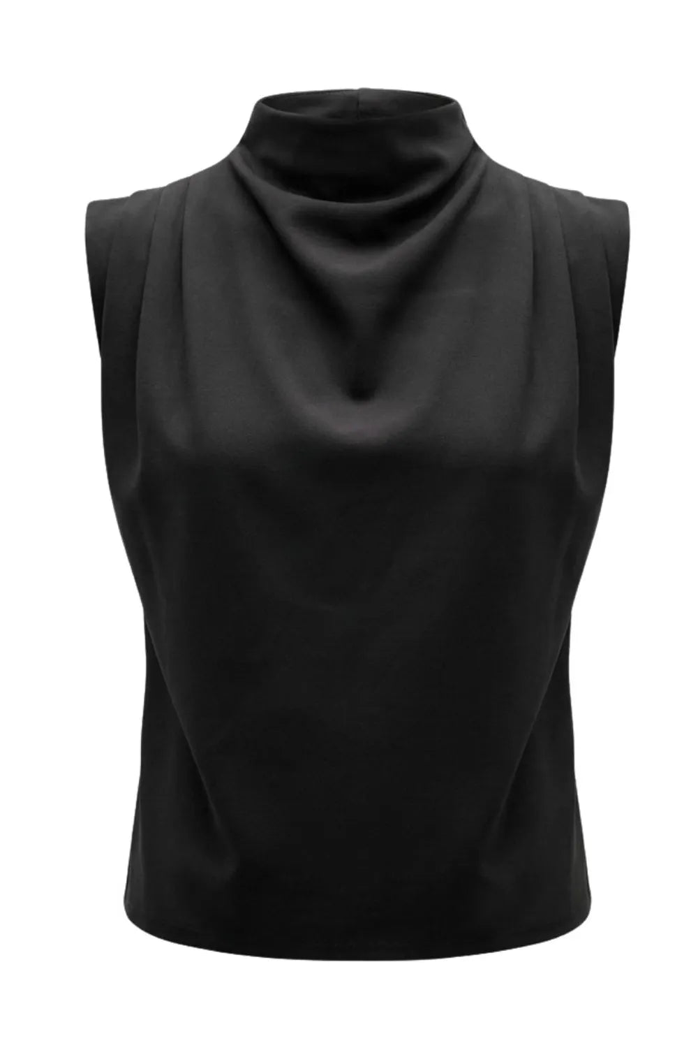 Blusa de fit oversized, sin mangas y cuello alto con detalles plisados en hombros.