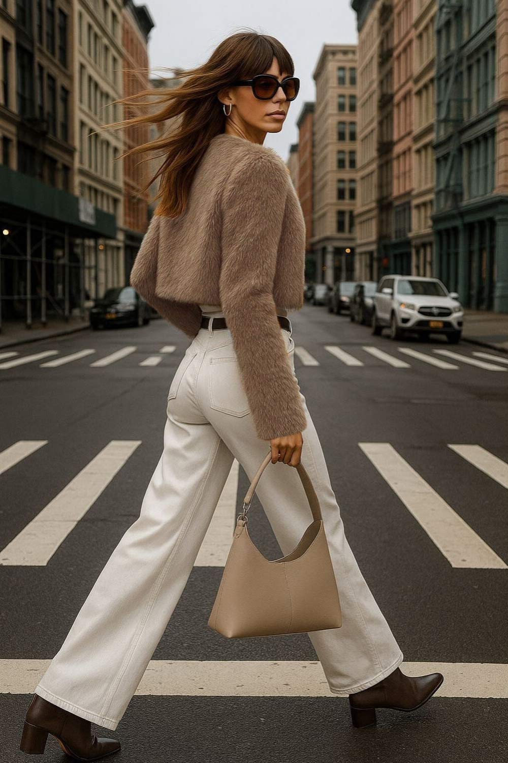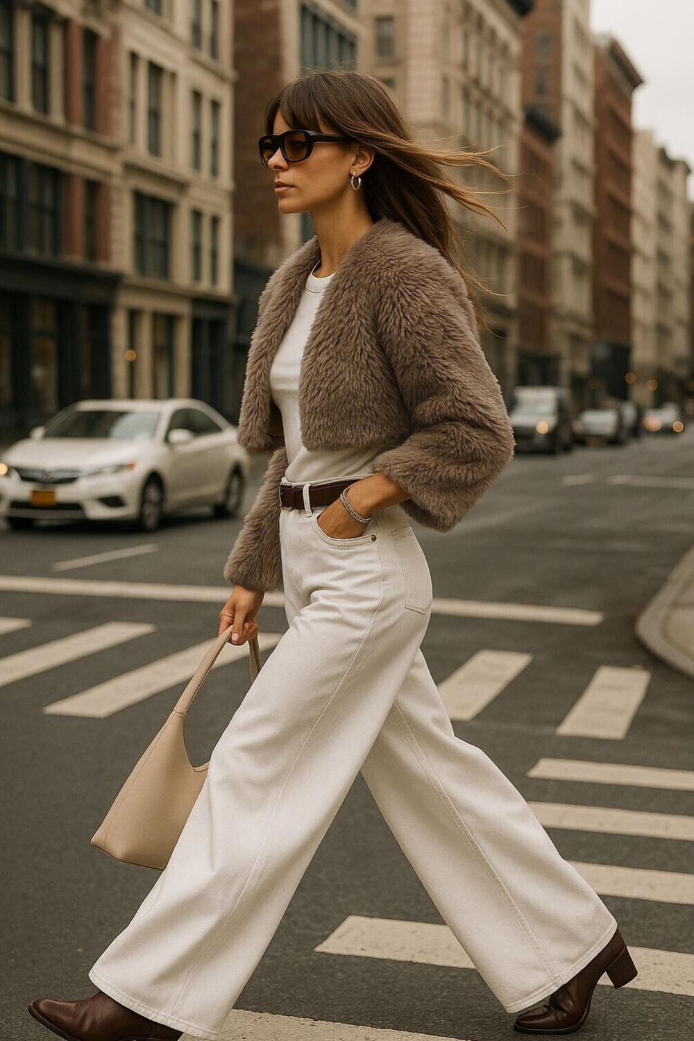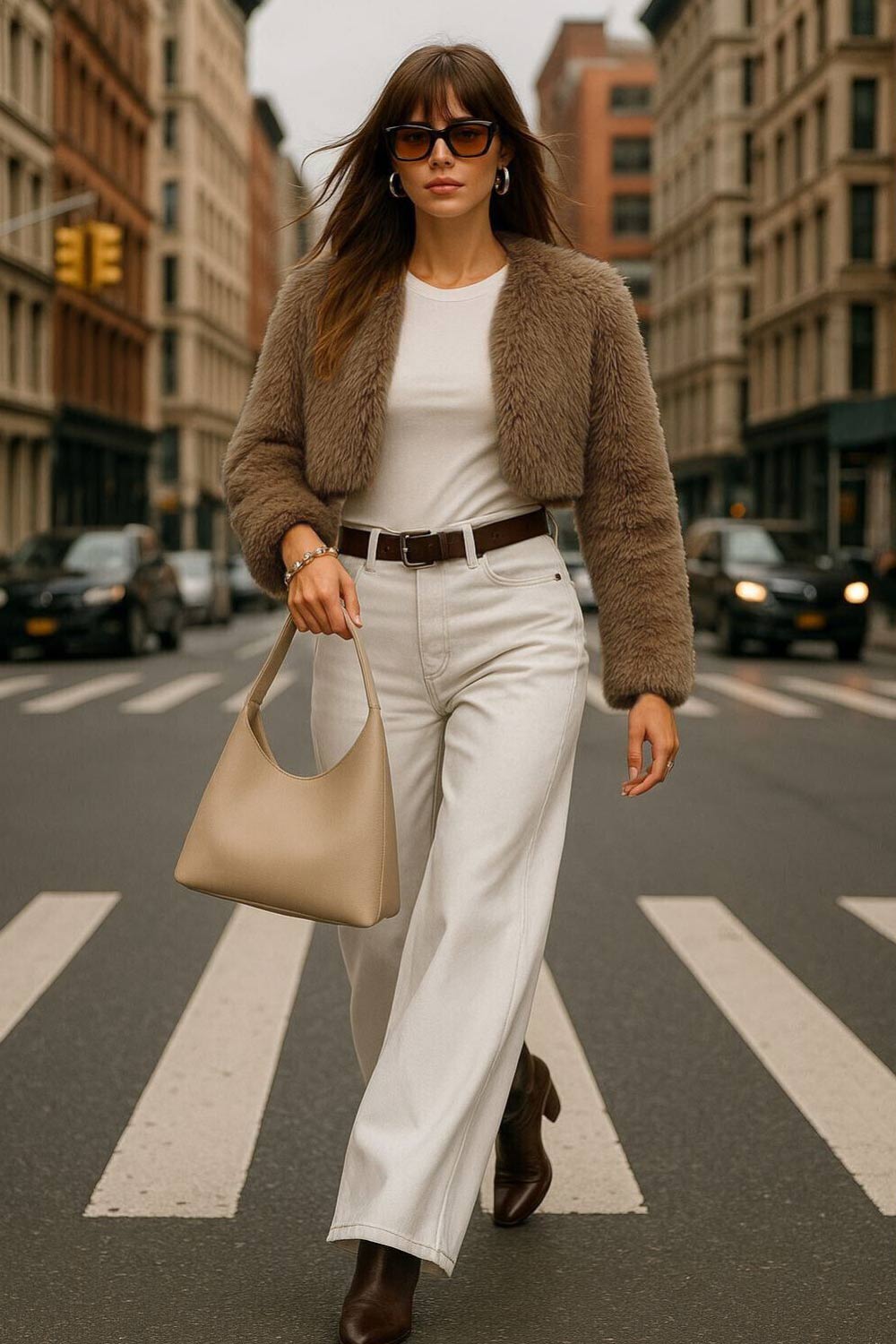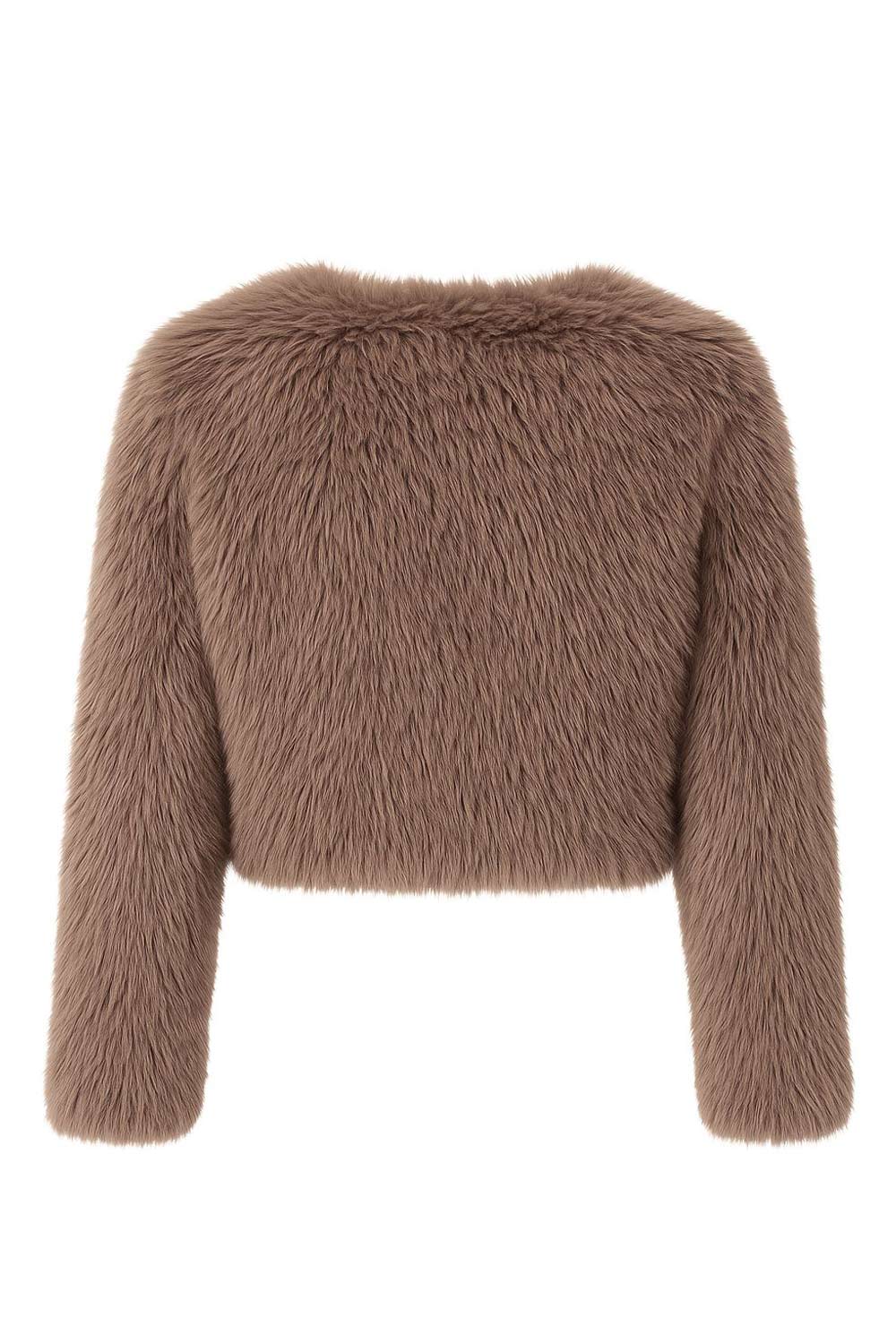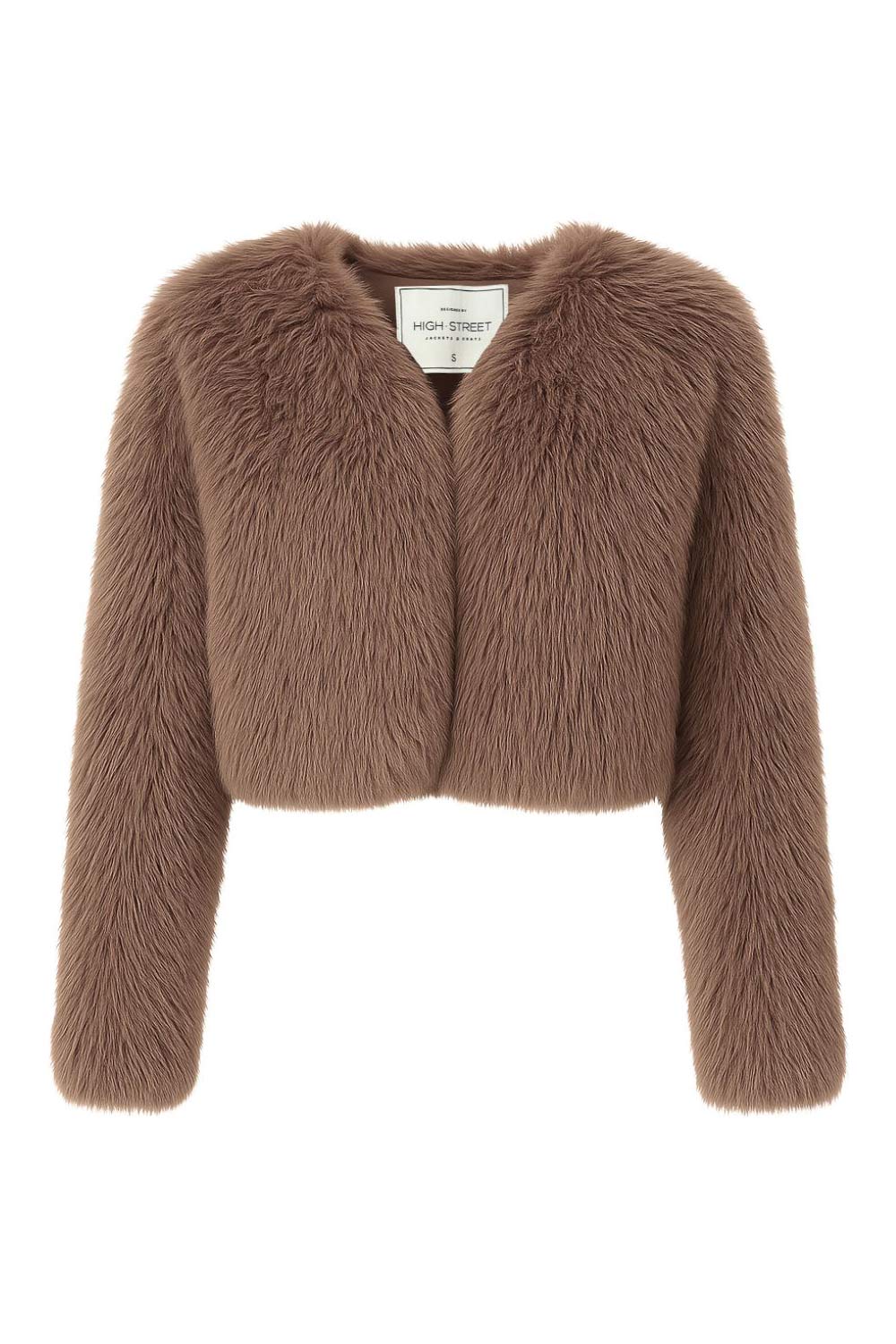 Blazer corto abierto de efecto pelo, fit recto, sin solapa, manga larga y bajo curveado frontal.