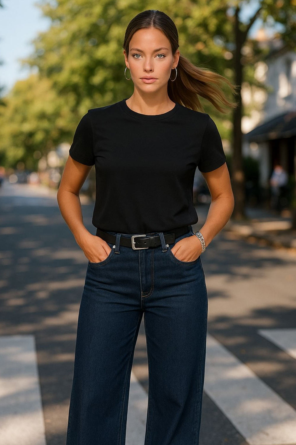 Camiseta básica de manga corta, cuello redondo y fit recto.