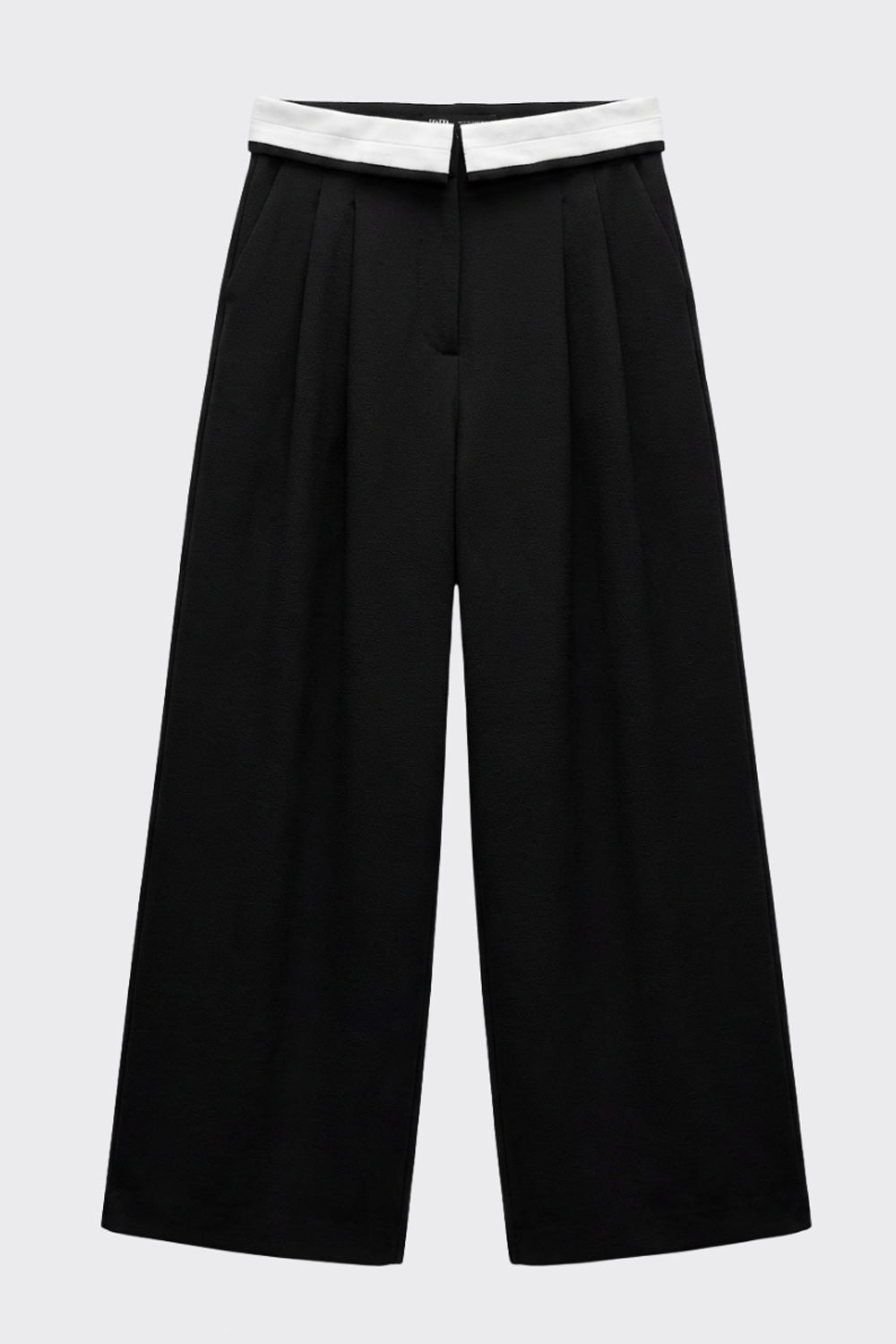 Pantalón wide leg con pinzas pretina contraste