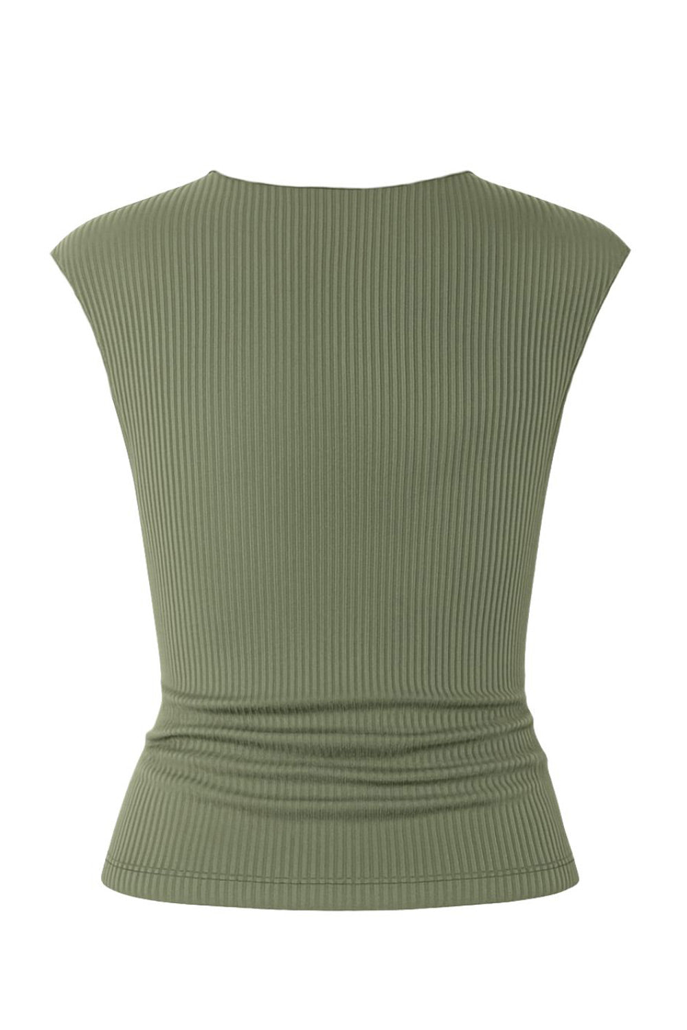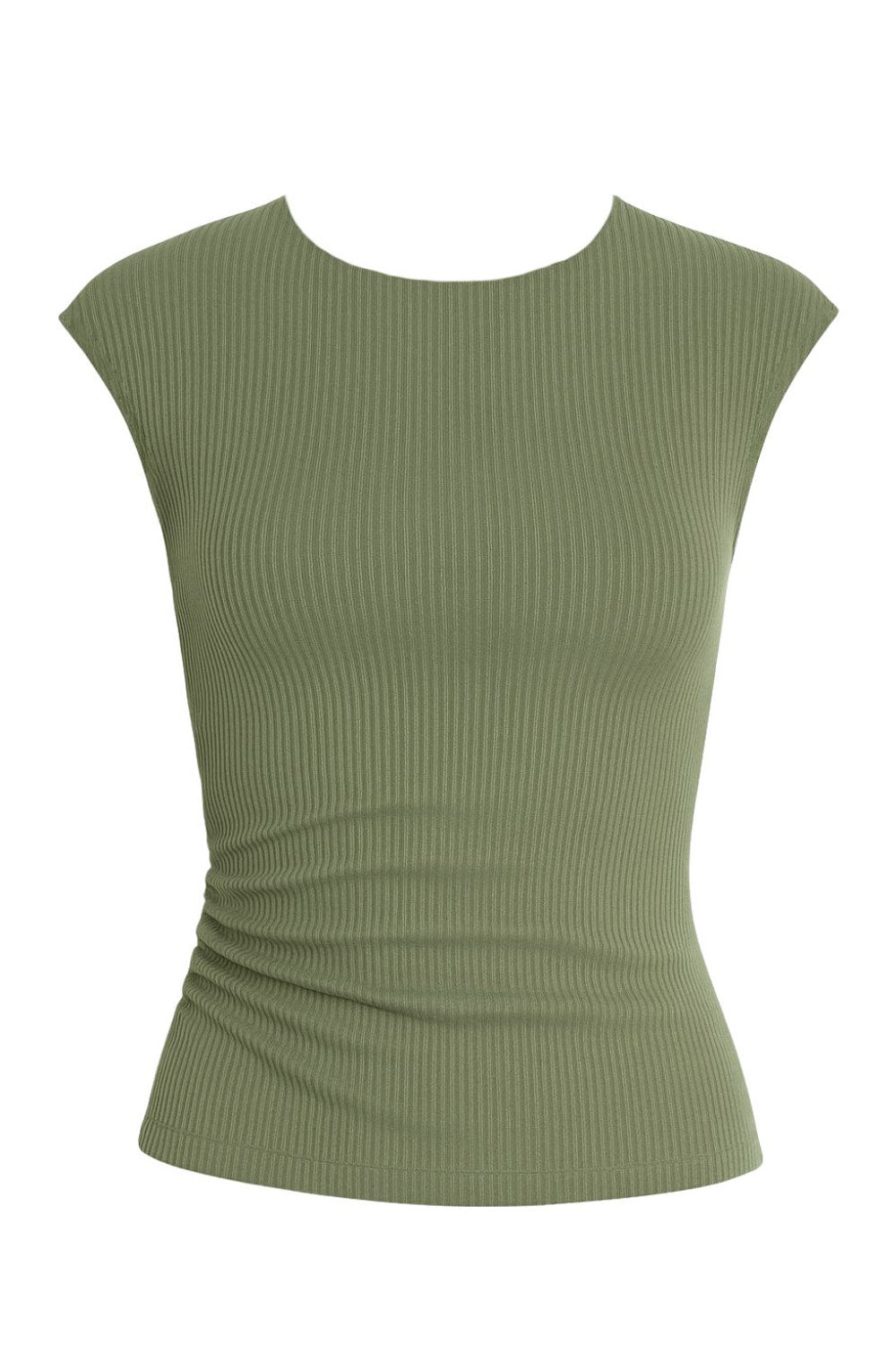 Top corto básico canalé de fit ajustado, cuello redondo y manga corta seguida.