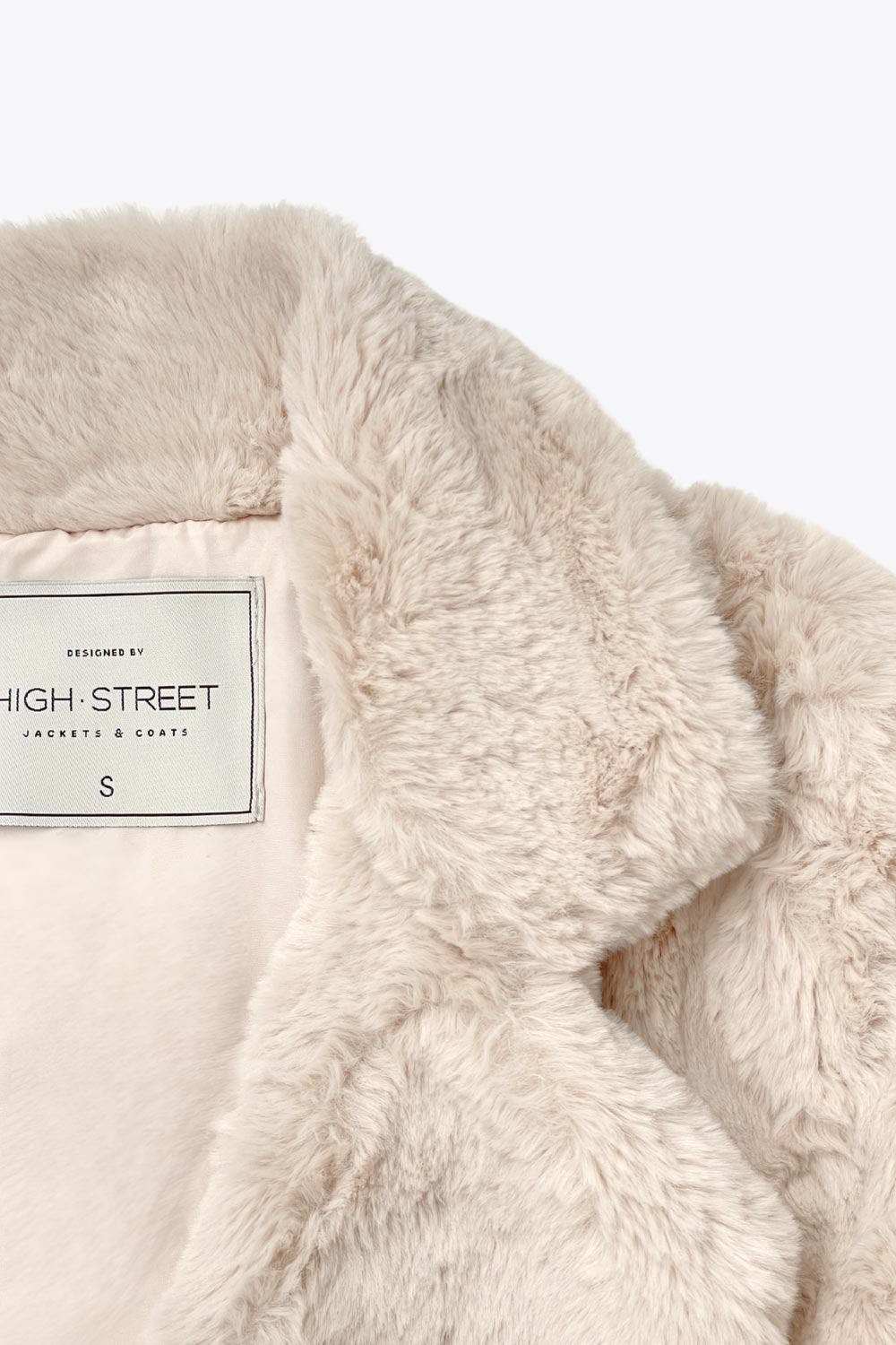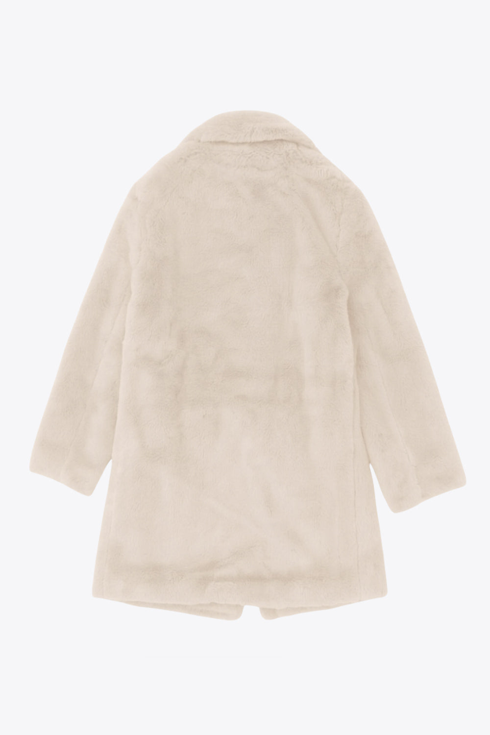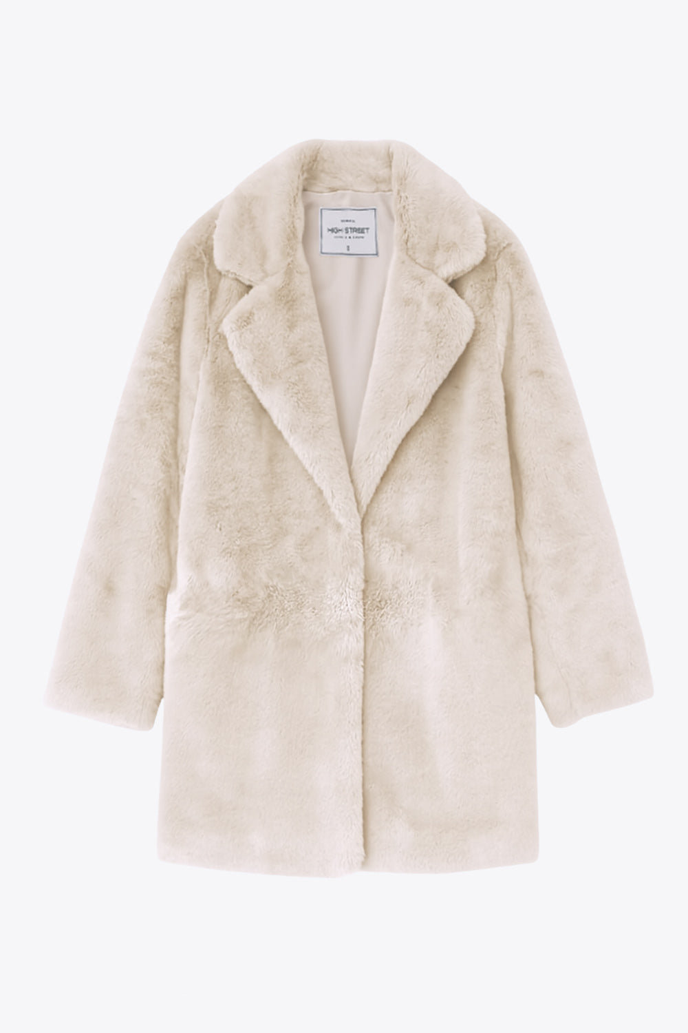 Abrigo largo abierto de fit recto, con solapa, manga larga y bolsillos frontales.