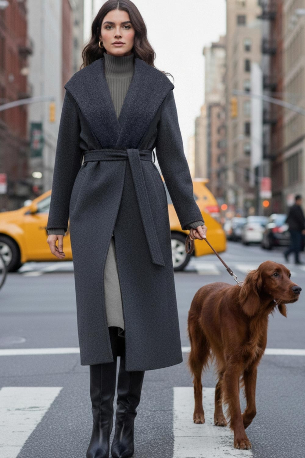 Abrigo largo de fit recto con capucha, manga larga y bolsillos delanteros. Detalle de trabillas y cinturón amarrable del mismo tejido.