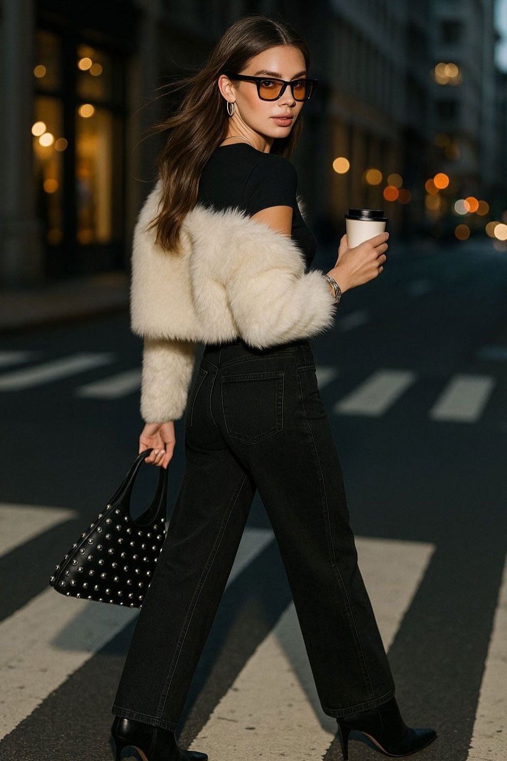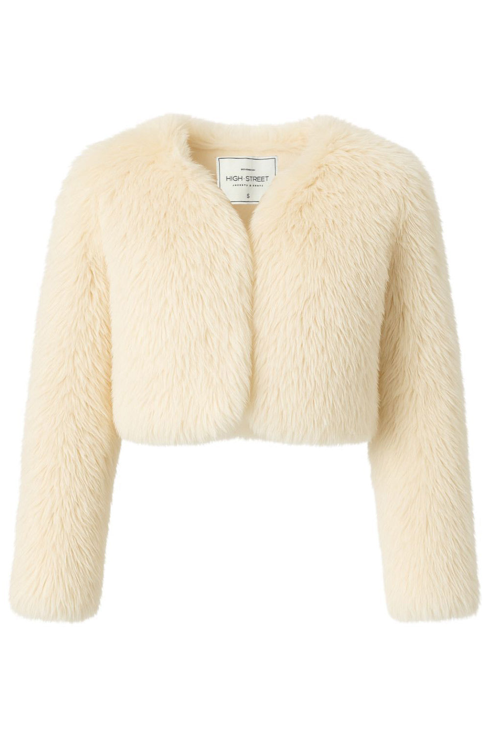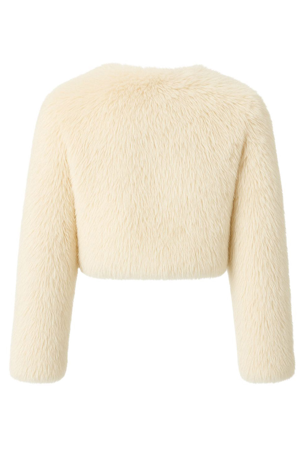 Blazer corto abierto de efecto pelo, fit recto, sin solapa, manga larga y bajo curveado frontal.