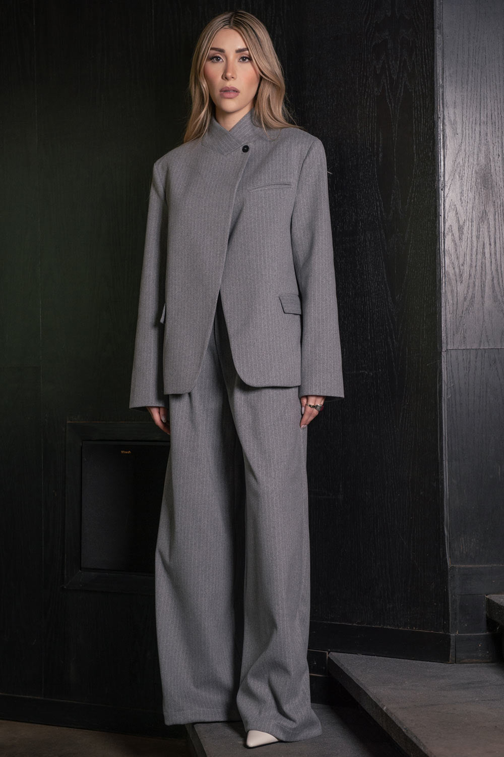Blazer cruzado de rayas cuello solapa