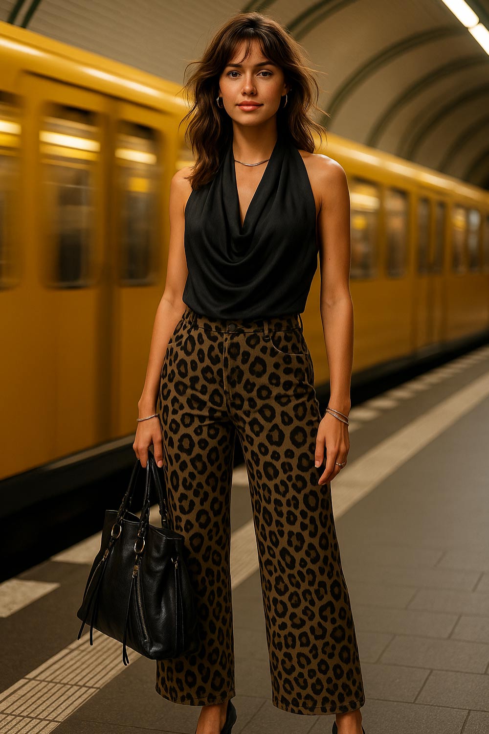 Blusa corta de cuello halter, escote fluido frontal y en espalda.