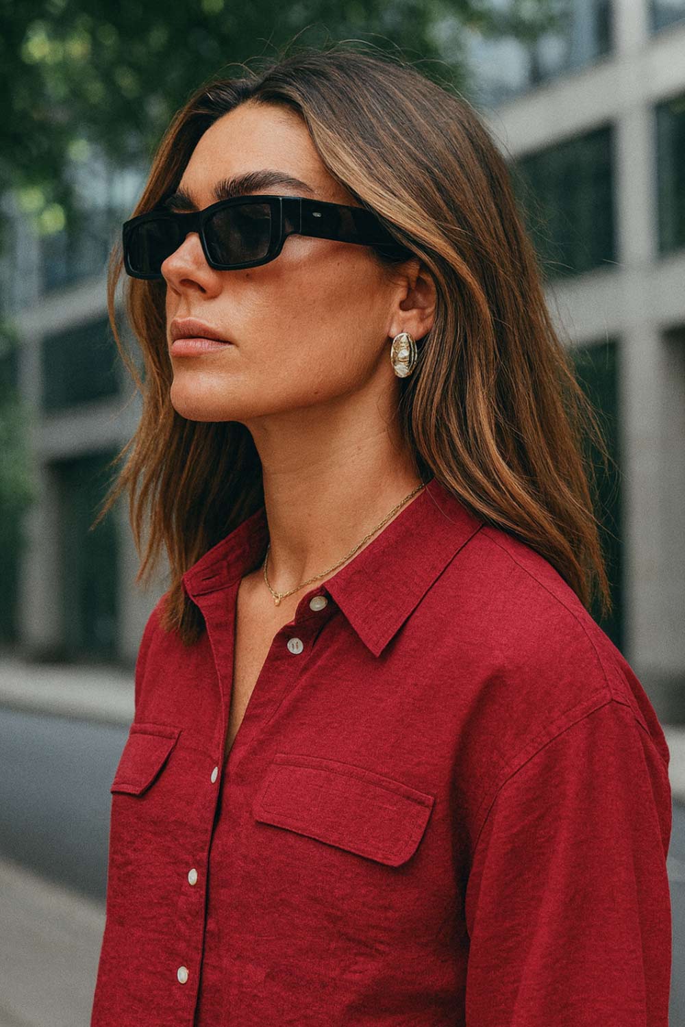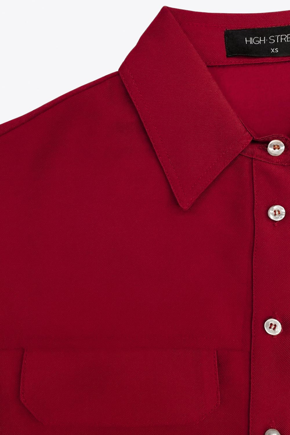 Camisa corta de fit oversized, manga 3/4 amplia con doblez en puños, cuello camisero, bolsillos frontales decorativos con cartera y pinza de amplitud en espalda. Cierre frontal con hilera de botones.