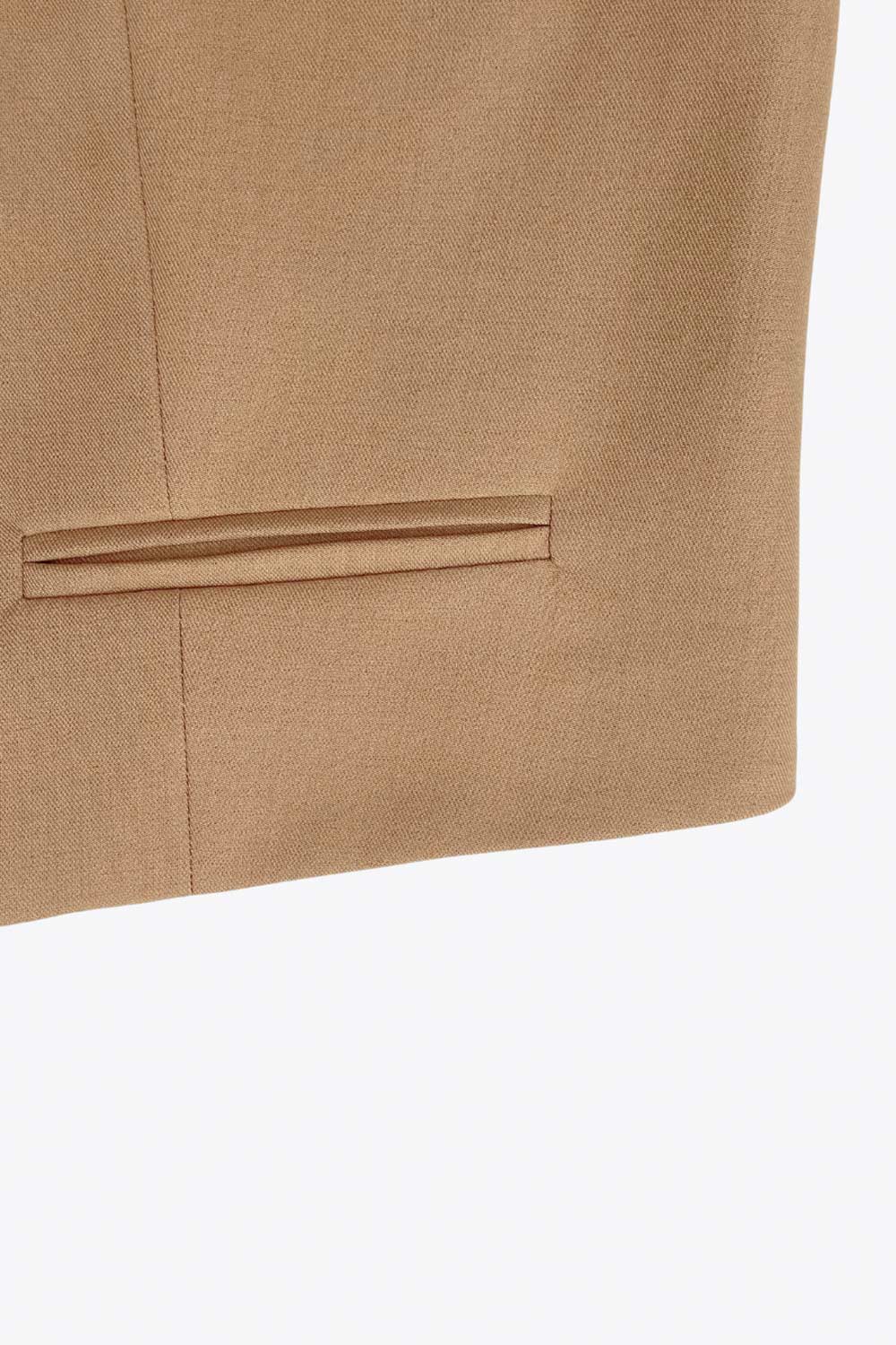 Chaleco de fit ajustado, cuello redondo, pinzas frontales, vivos decorativos frontales, cierre frontal con hilera de botones en contraste y abertura frontal en bajo.