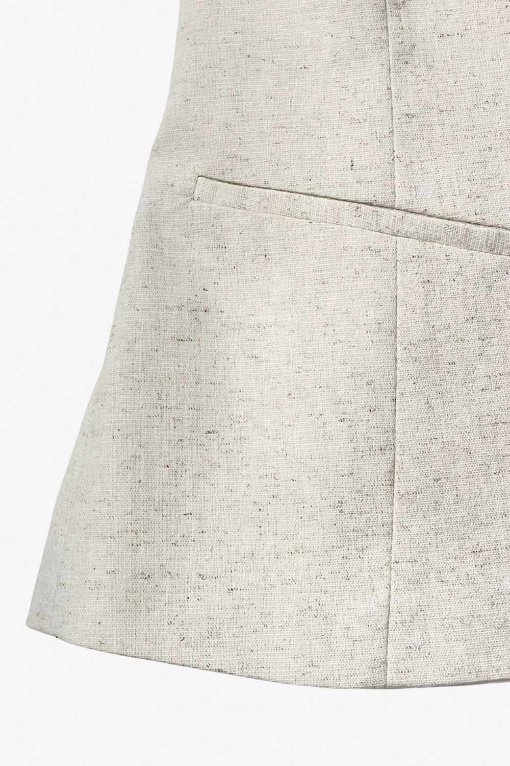 Chaleco corto de cuello halter con elástico posterior, fit ajustado, escote v, pinzas frontales, vivos decorativos frontales y bajo curveado. Cierre frontal con botón en contraste.