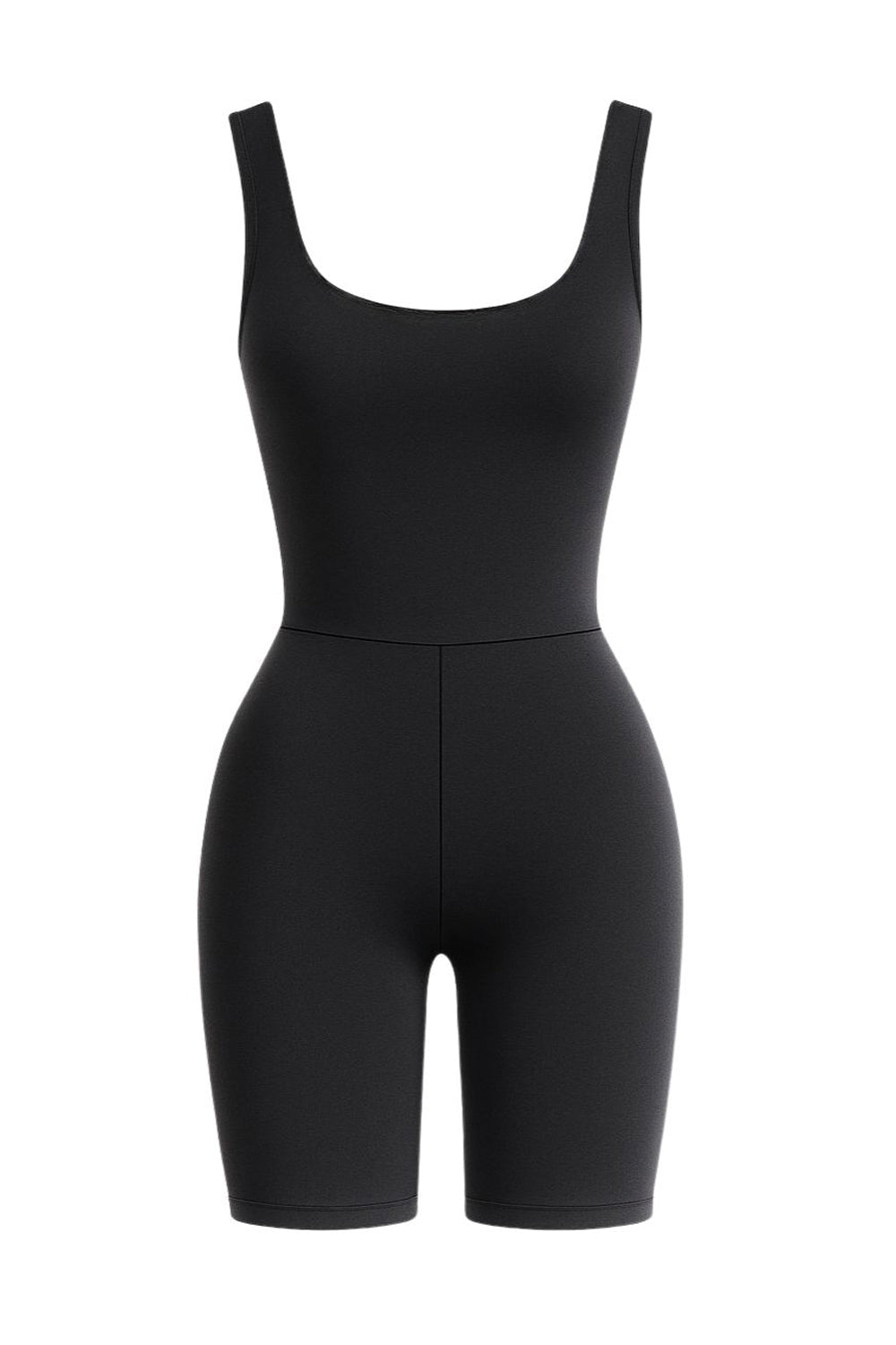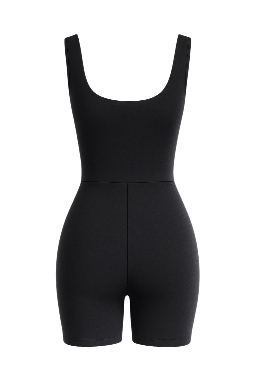 Mono corto deportivo de fit ajustado, corte en cintura, tirantes y escote cuadrado.
