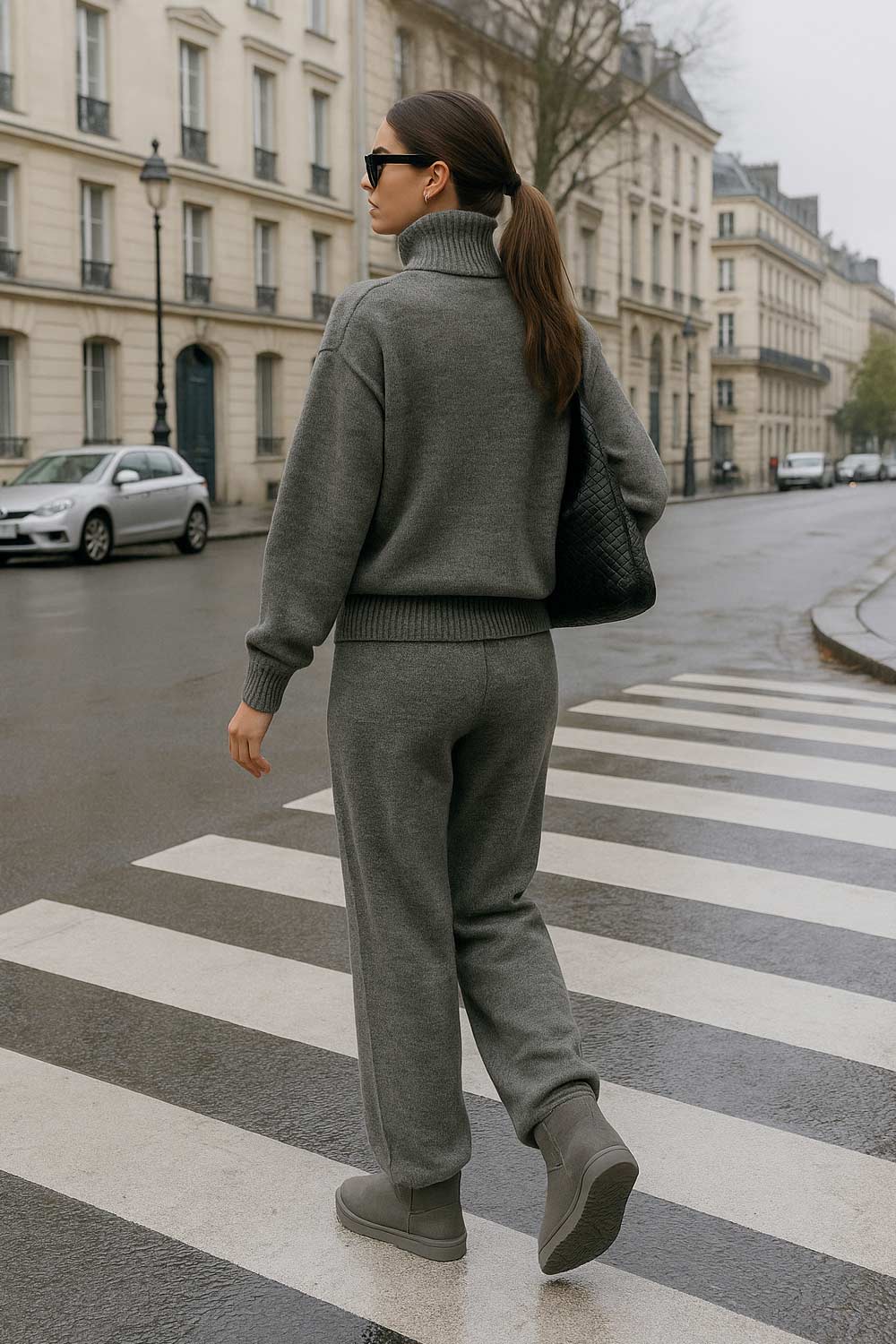 Pantalón de punto fit recto, cintura media con pretina elástica y rib en bajo.