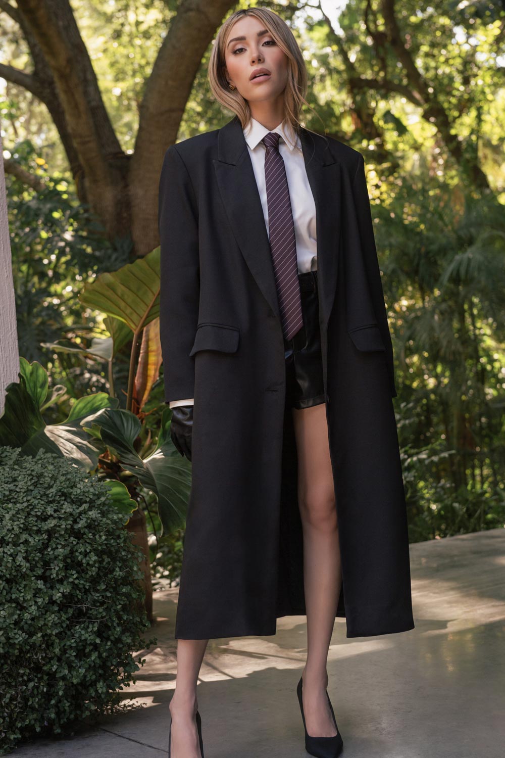 Short corto de efecto piel, fit ajustado, cintura alta con pretina y trabillas, bolsillos delanteros y vivos decorativos posteriores. Cierre frontal con botón y cremallera oculta.