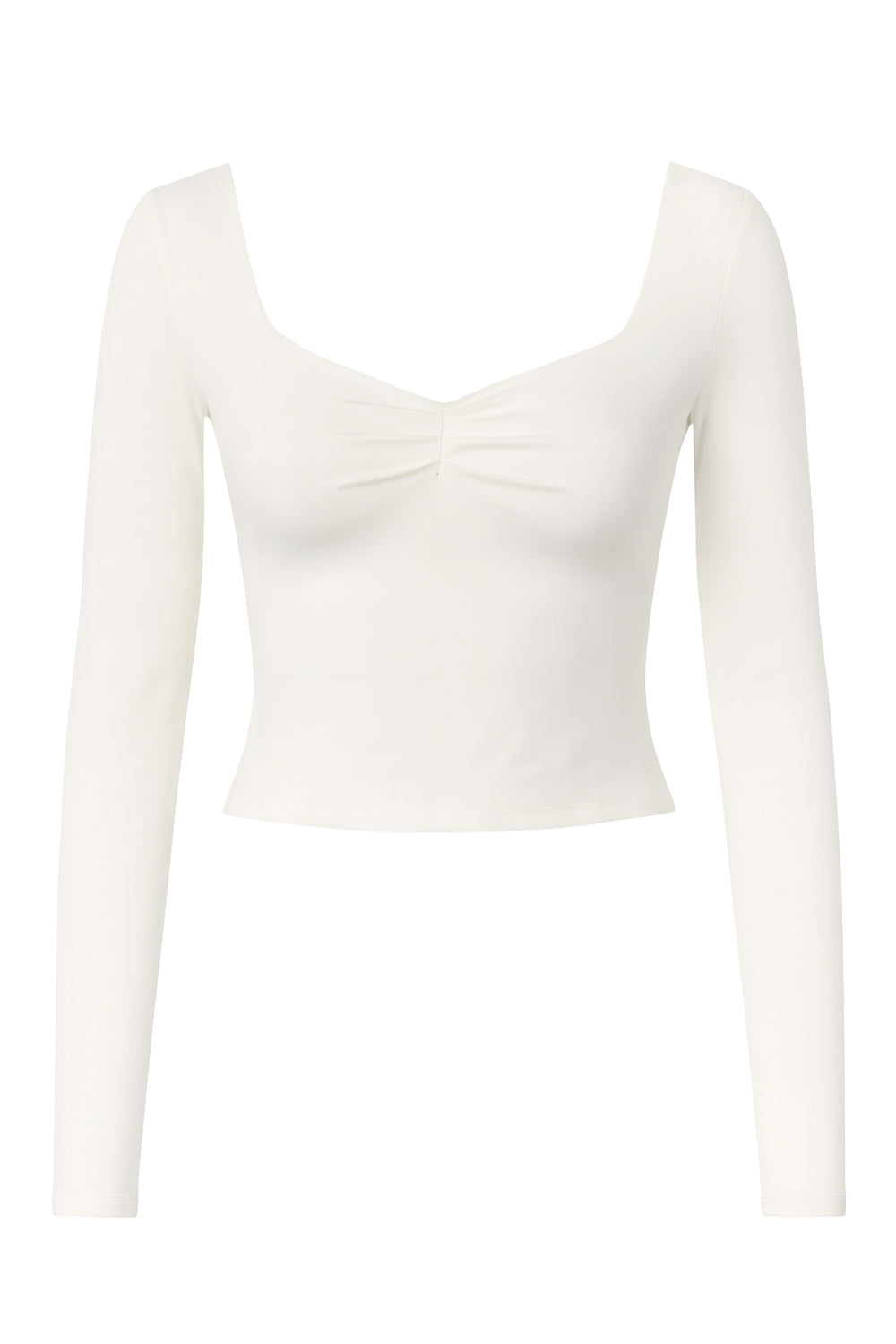 Top corto de fit ajustado, manga larga y cuello cuadrado con plisado frontal.