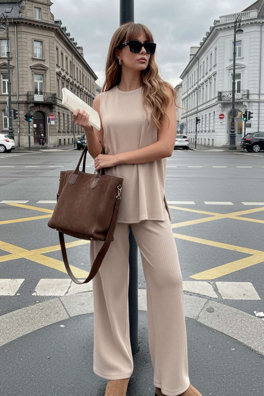 Top tacto suave, fit fluido, cuello redondo, sin mangas y detalle de aberturas laterales en bajo.