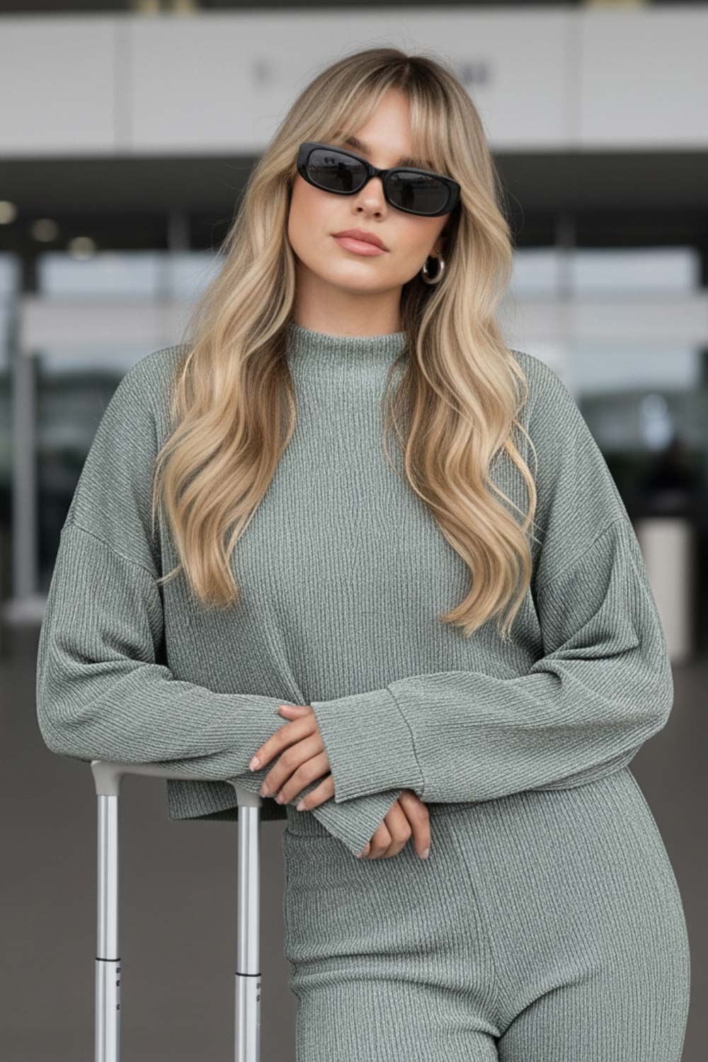 Top de manga larga con hombro caído, cuello mock seguido, fit recto y textura en tejido.