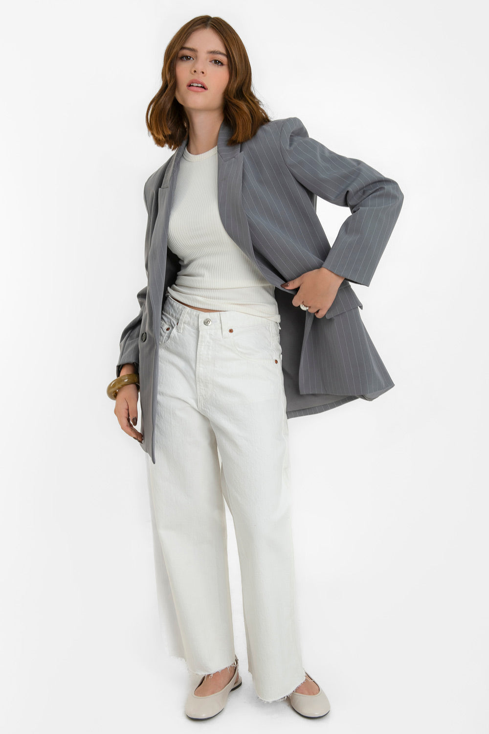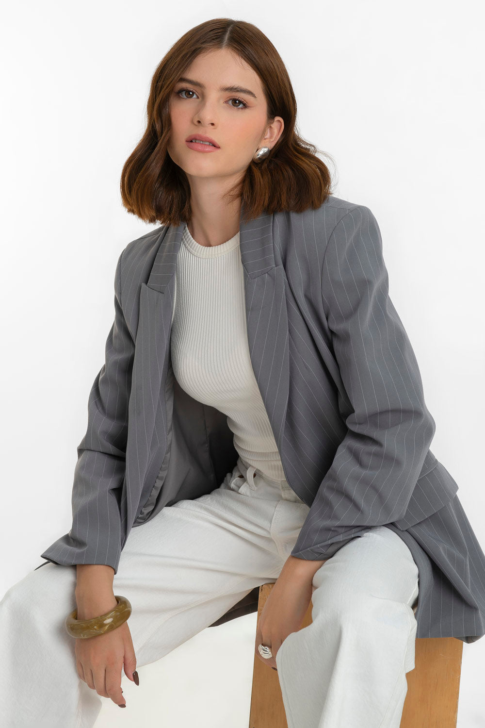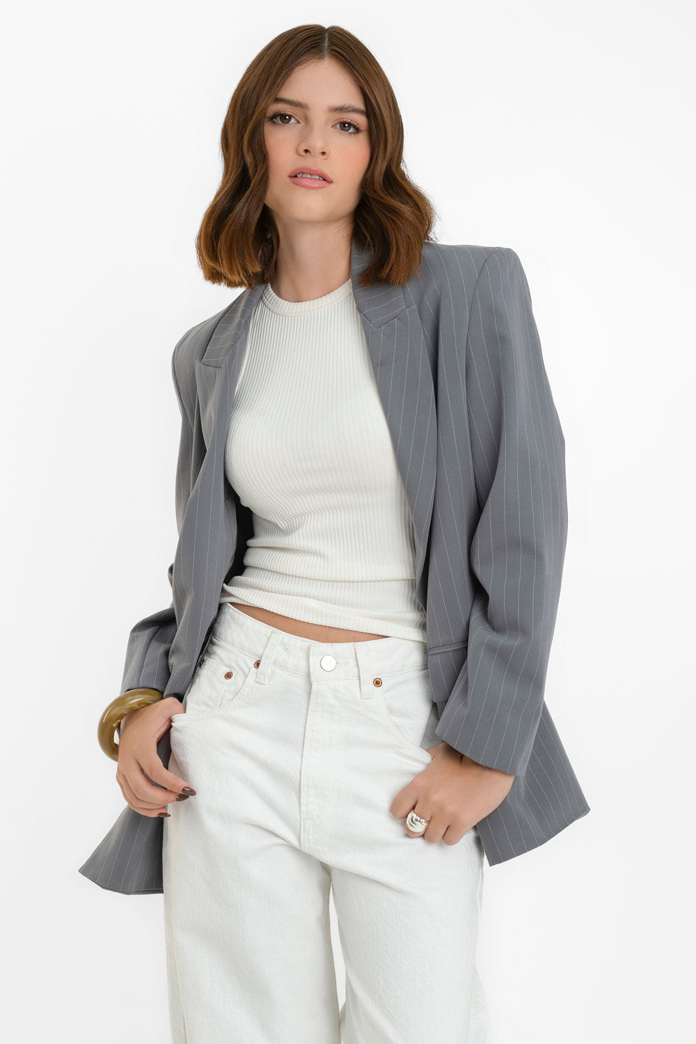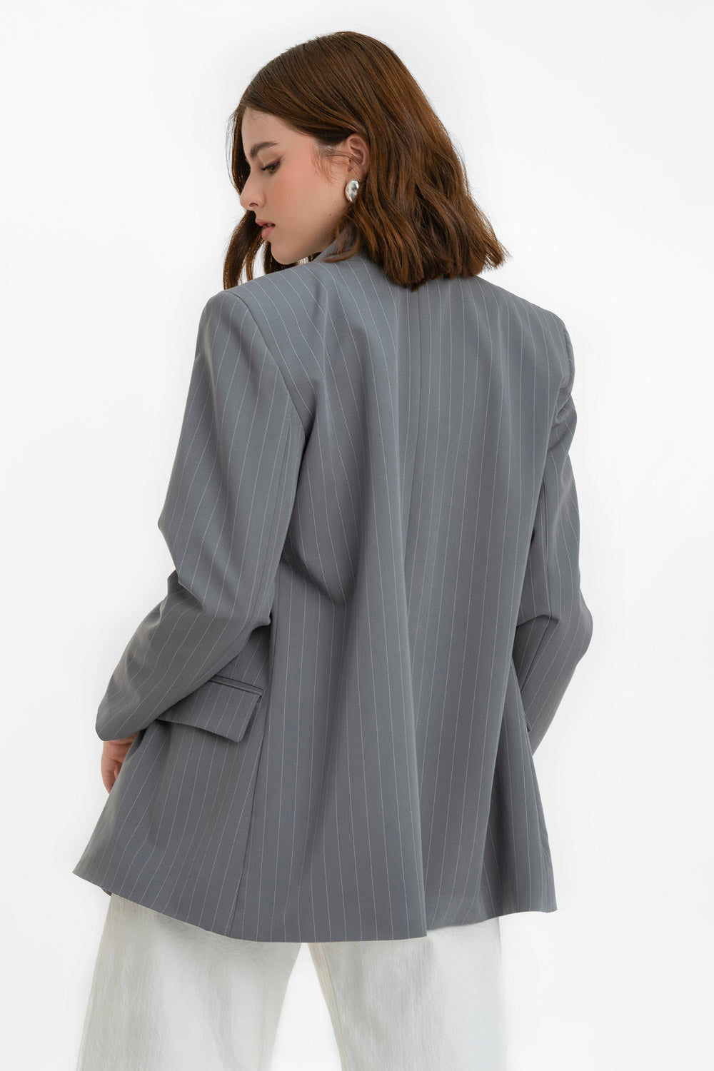 Blazer cruzado de rayas oversized manga larga