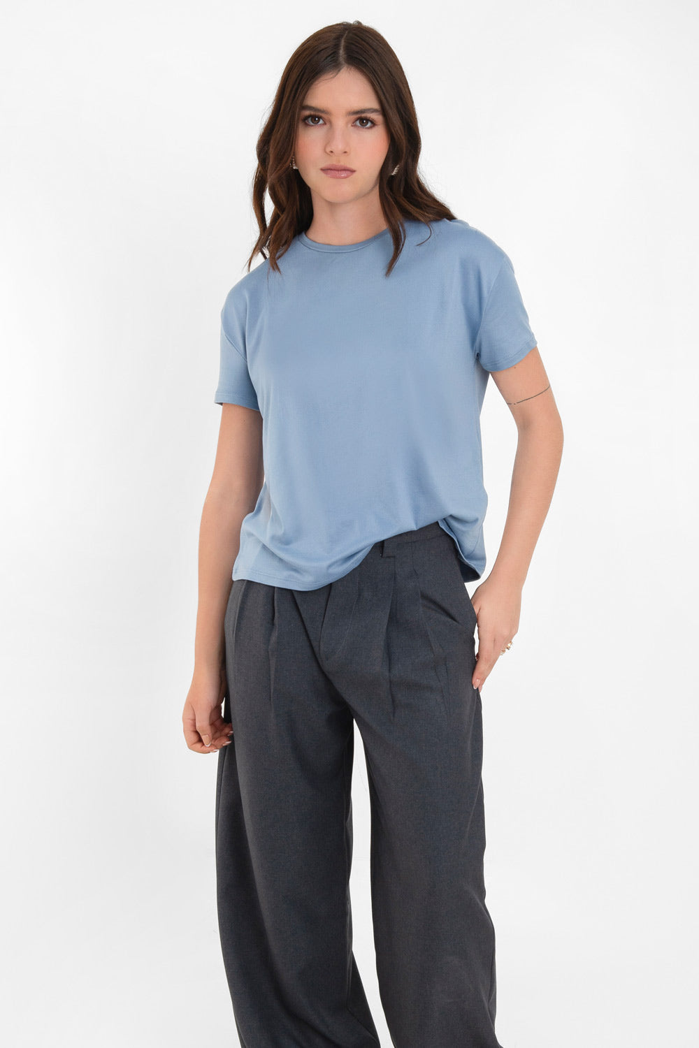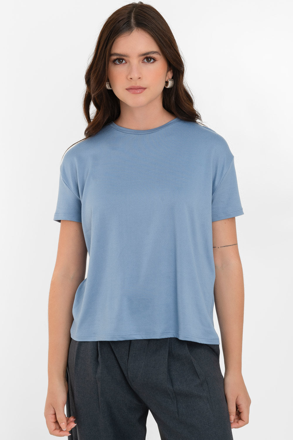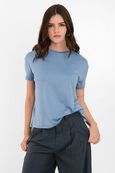 Camiseta básica de manga corta, cuello redondo y fit recto.