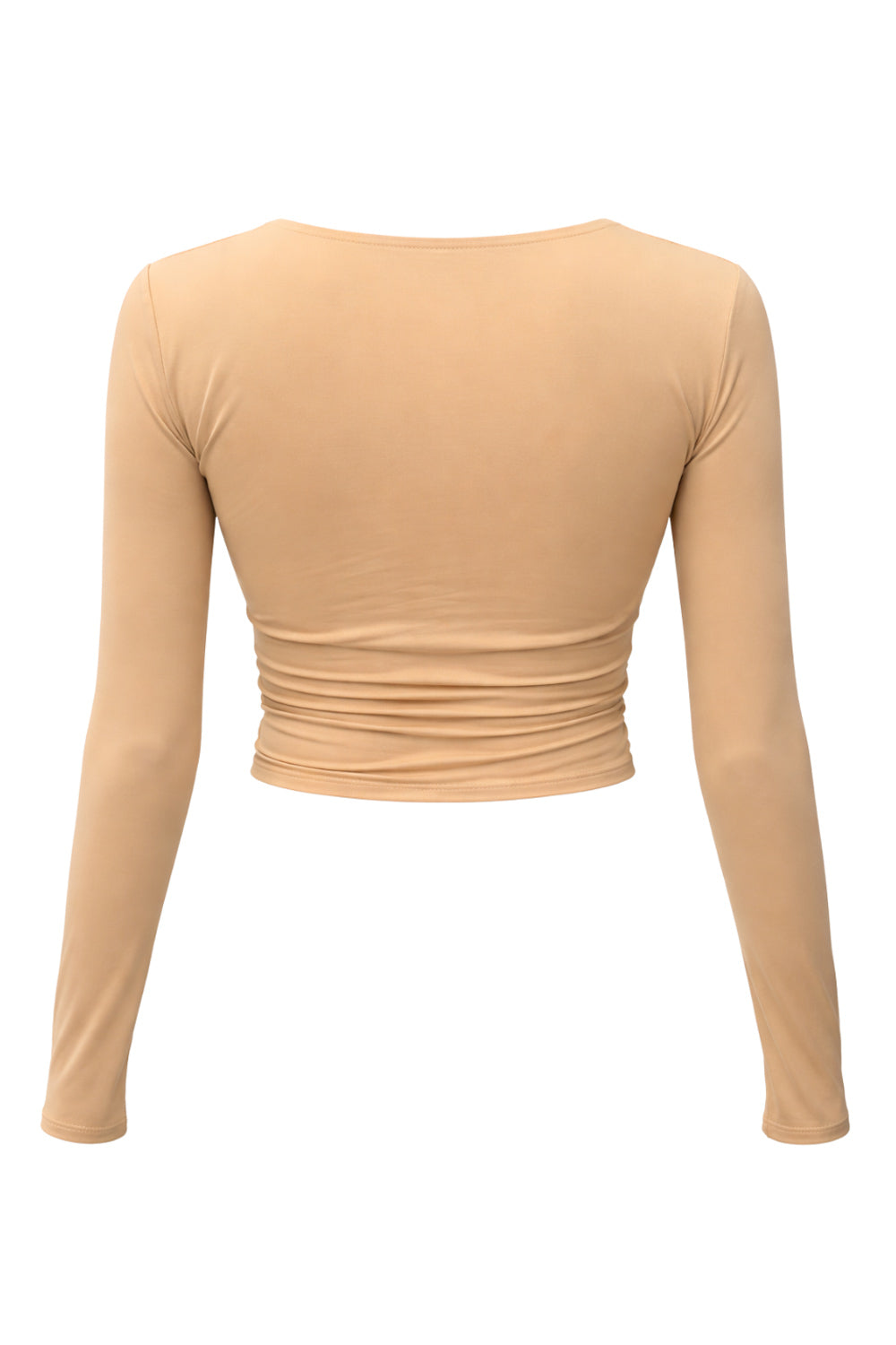 Crop top de fit ajustado, escote v cruzado, plisados en costados y manga larga.
