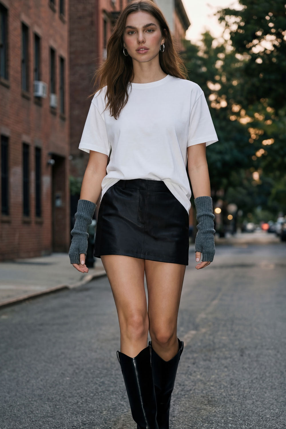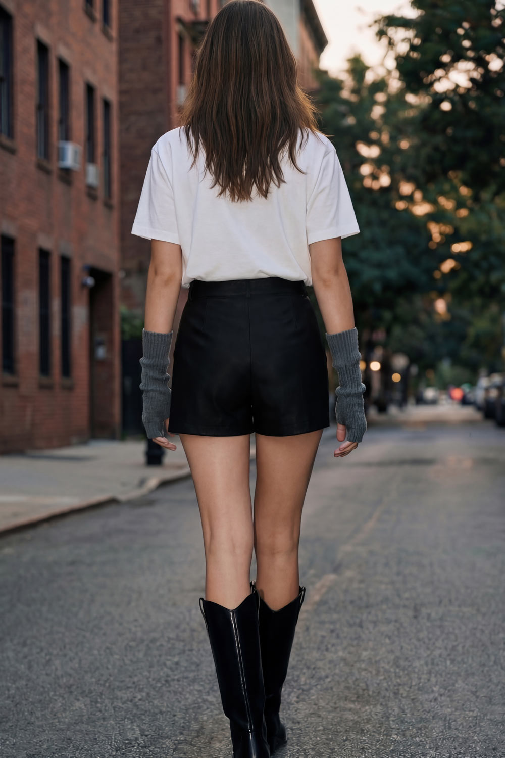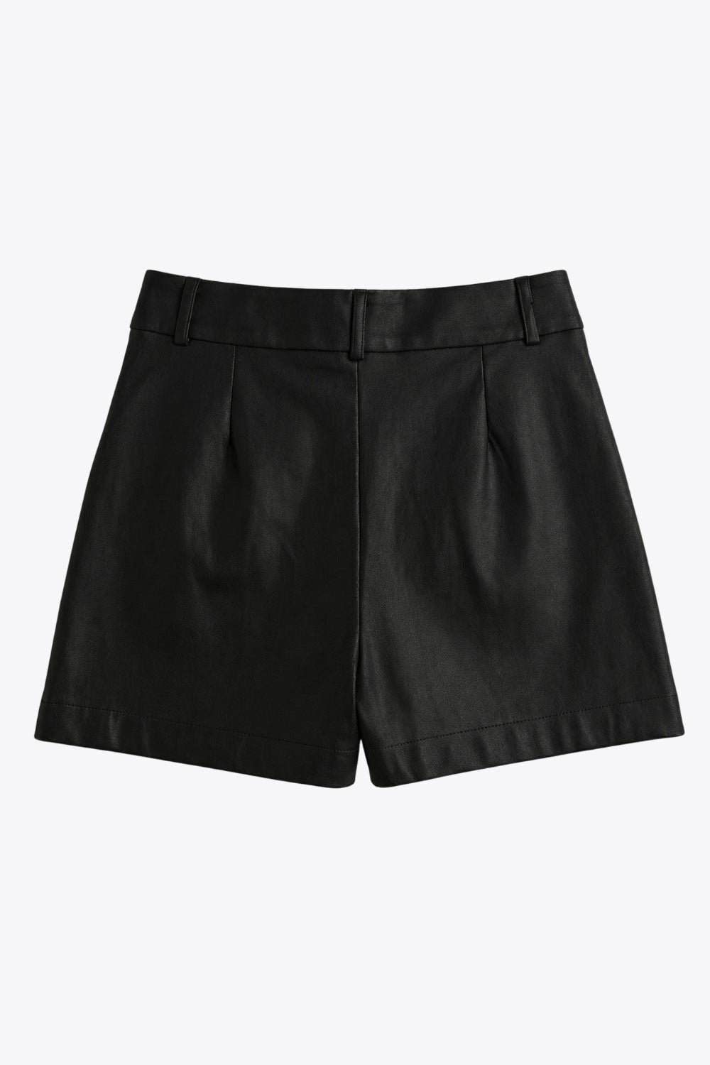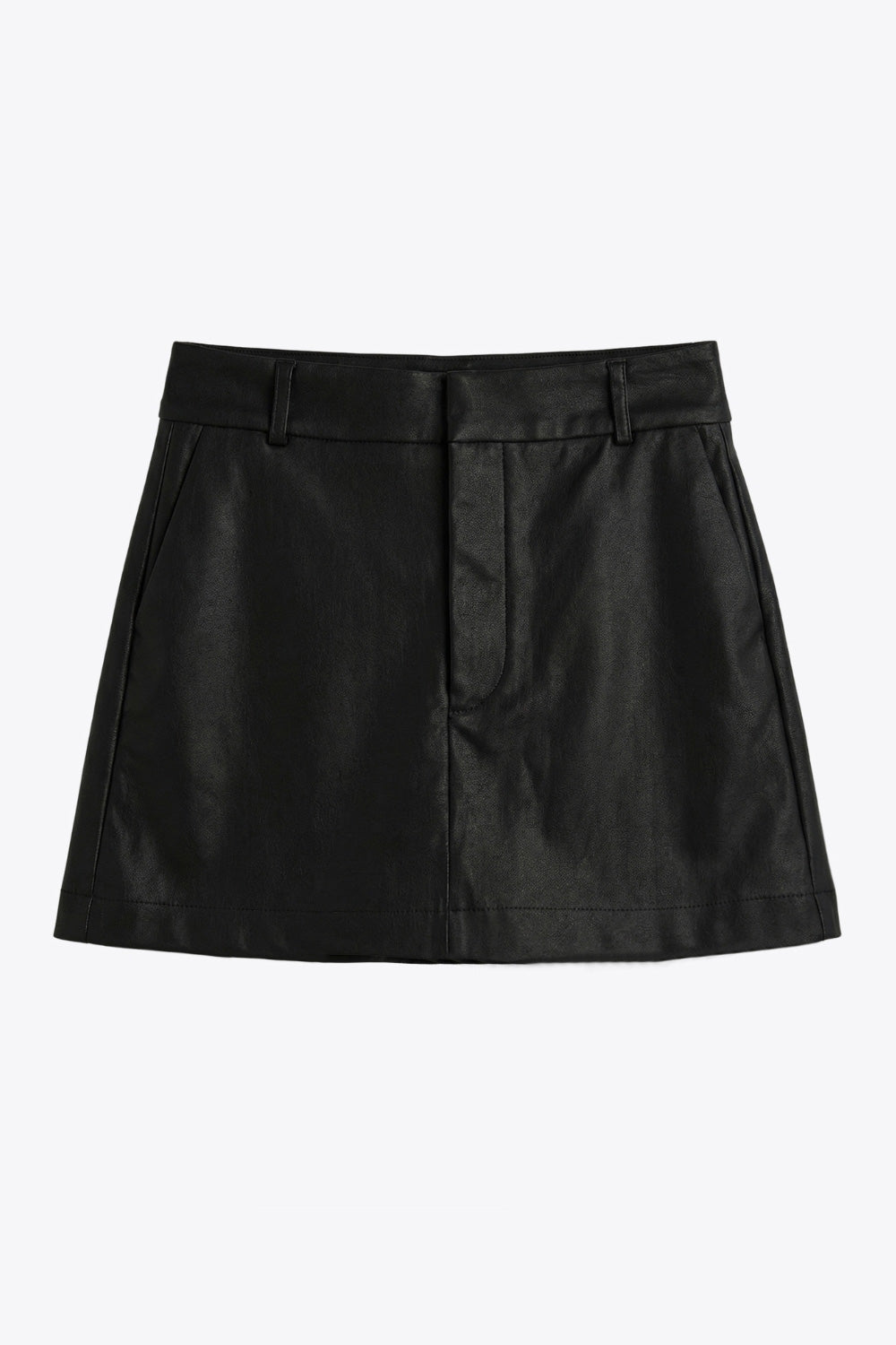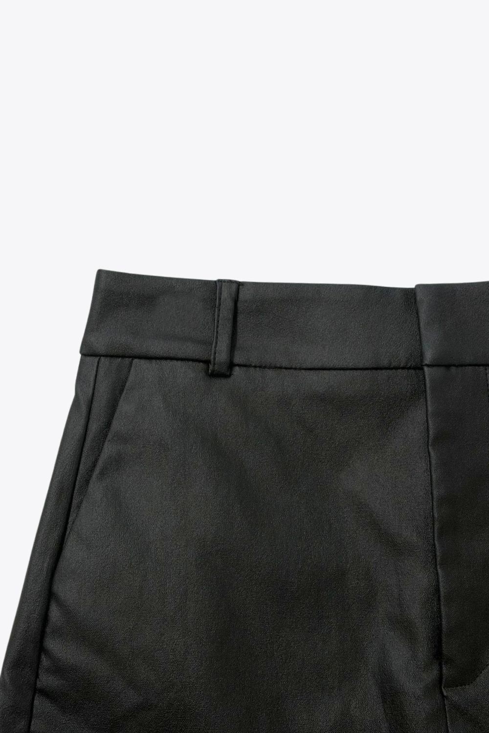 Falda short corto de fit ajustado, cintura alta con pretina y trabillas, bolsillos delanteros, cierre frontal con broche y cremallera ocultos.