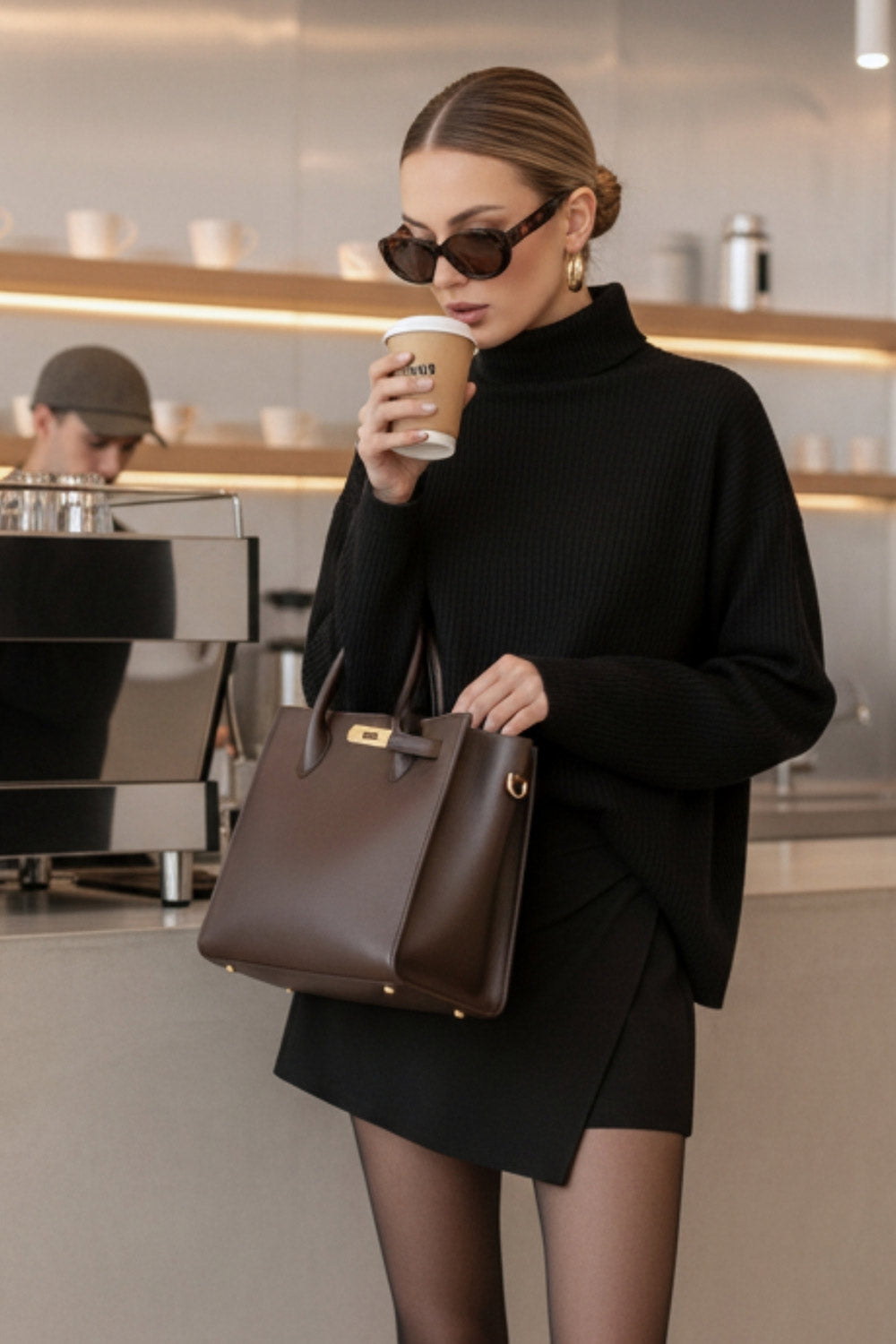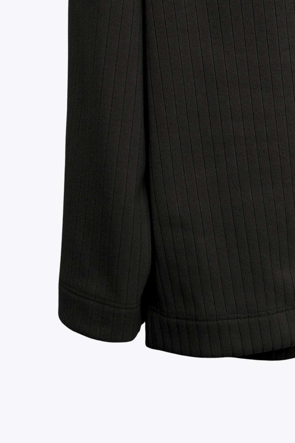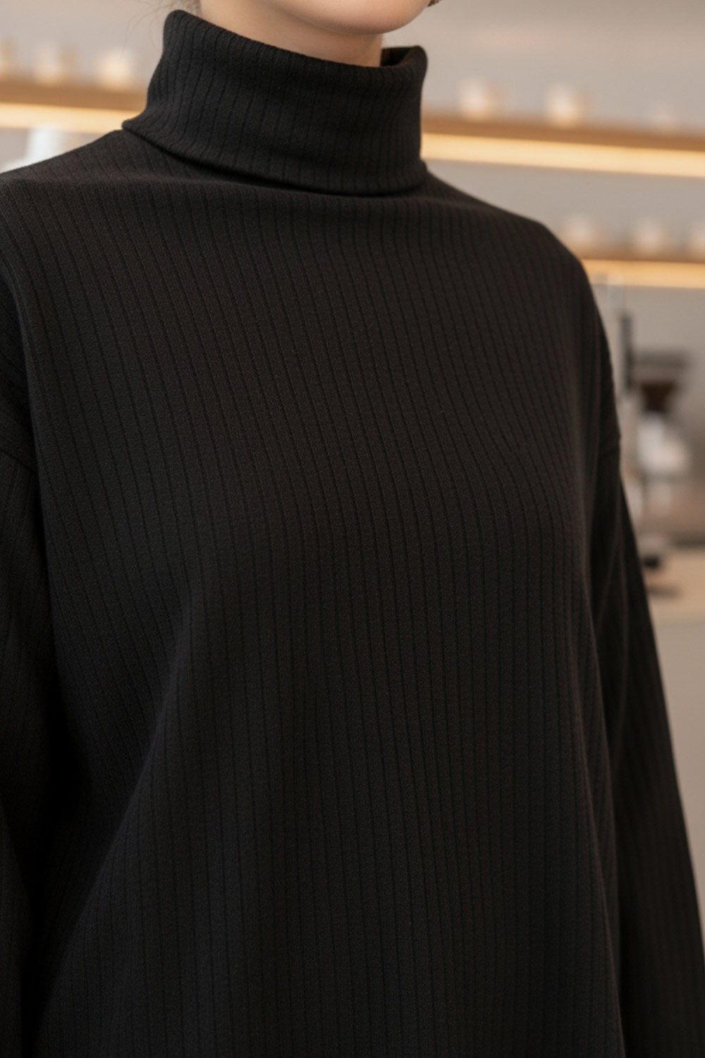 Jersey canalé de punto, fit oversized, cuello alto con doblez y manga larga.