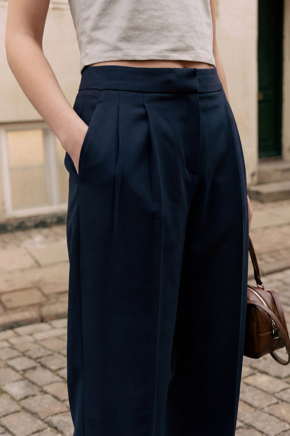 Pantalón de fit recto con pinzas frontales tiro alto