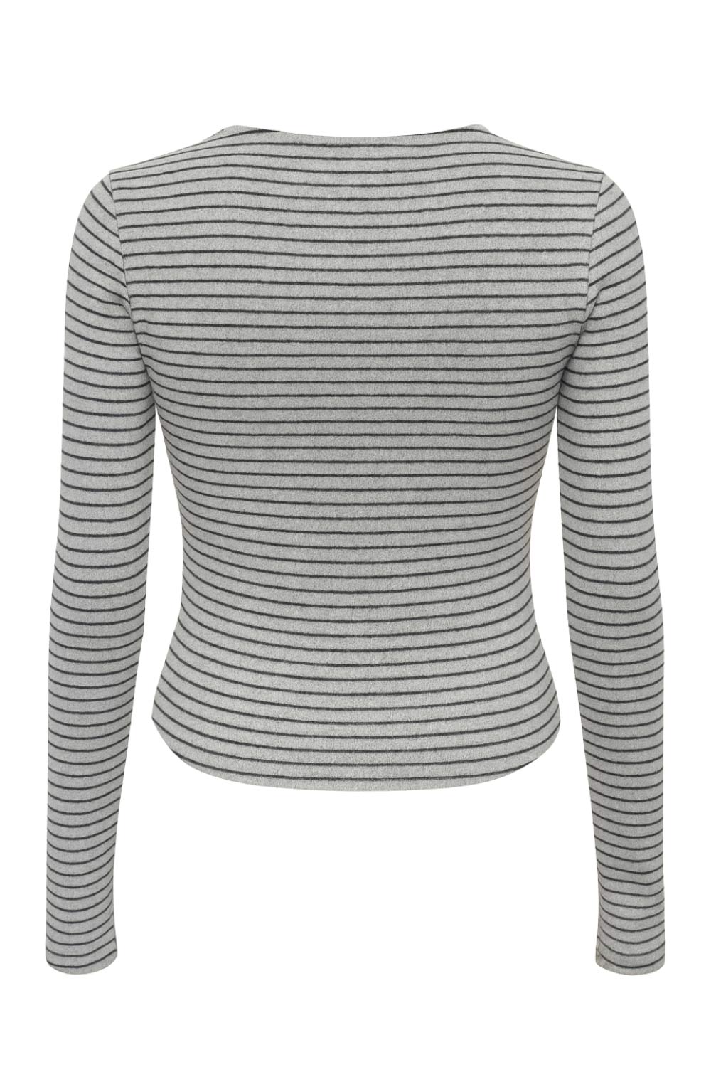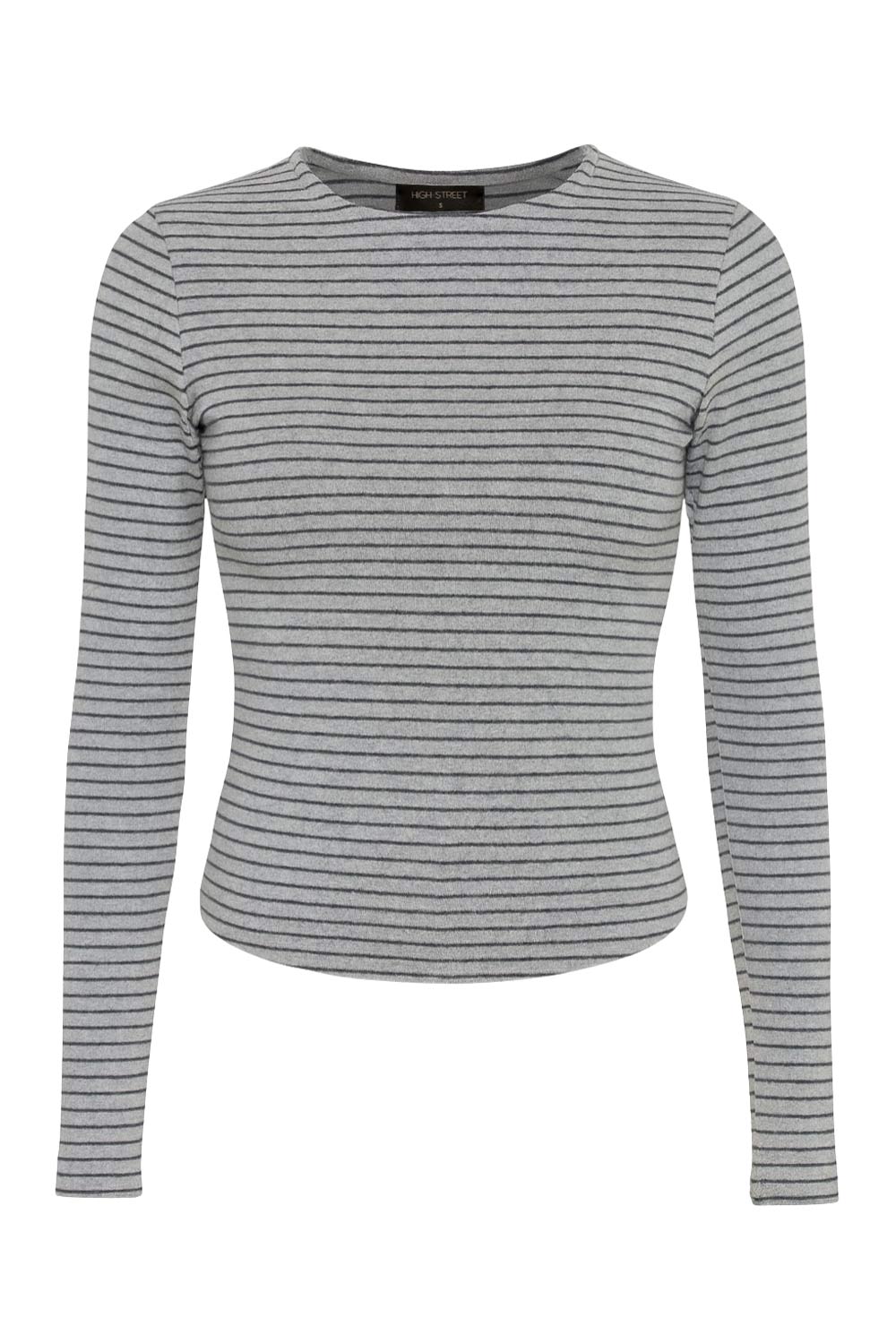 Top básico de estampado rayas, cuello redondo y manga larga.